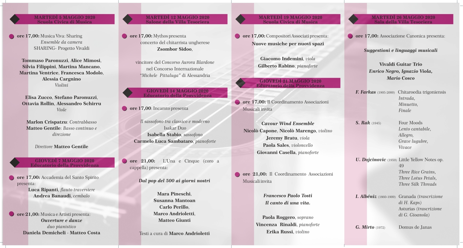 sfortunatamente, i miei concerti programmati a Torino nell'ambito del Festival Corde Pizzicate e a San Maurizio d'Opaglio all'interno di Un Paese a Sei Corde Master non si potranno tenere a causa della pandemia di COVID-19. Non vedevo davvero l'ora di suonare lì da voi, ma purtroppo la situazione attuale non consente di viaggiare. Concerti e altri eventi culturali rischiano ancora di diffondere la malattia. In questi giorni dovremo seguire le comunicazioni delle autorità sanitarie. Speriamo che presto saremo in grado di ascoltare di nuovo ottima musica dal vivo.